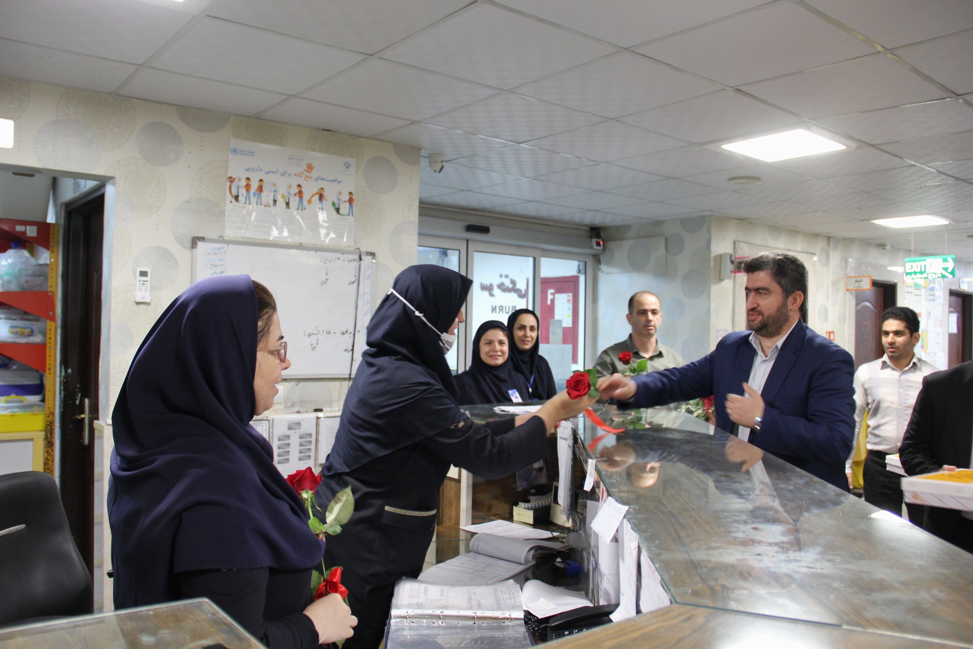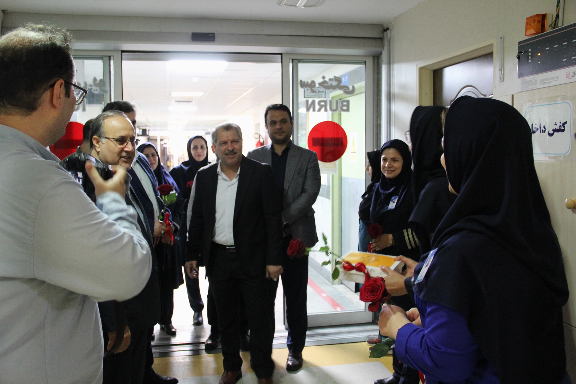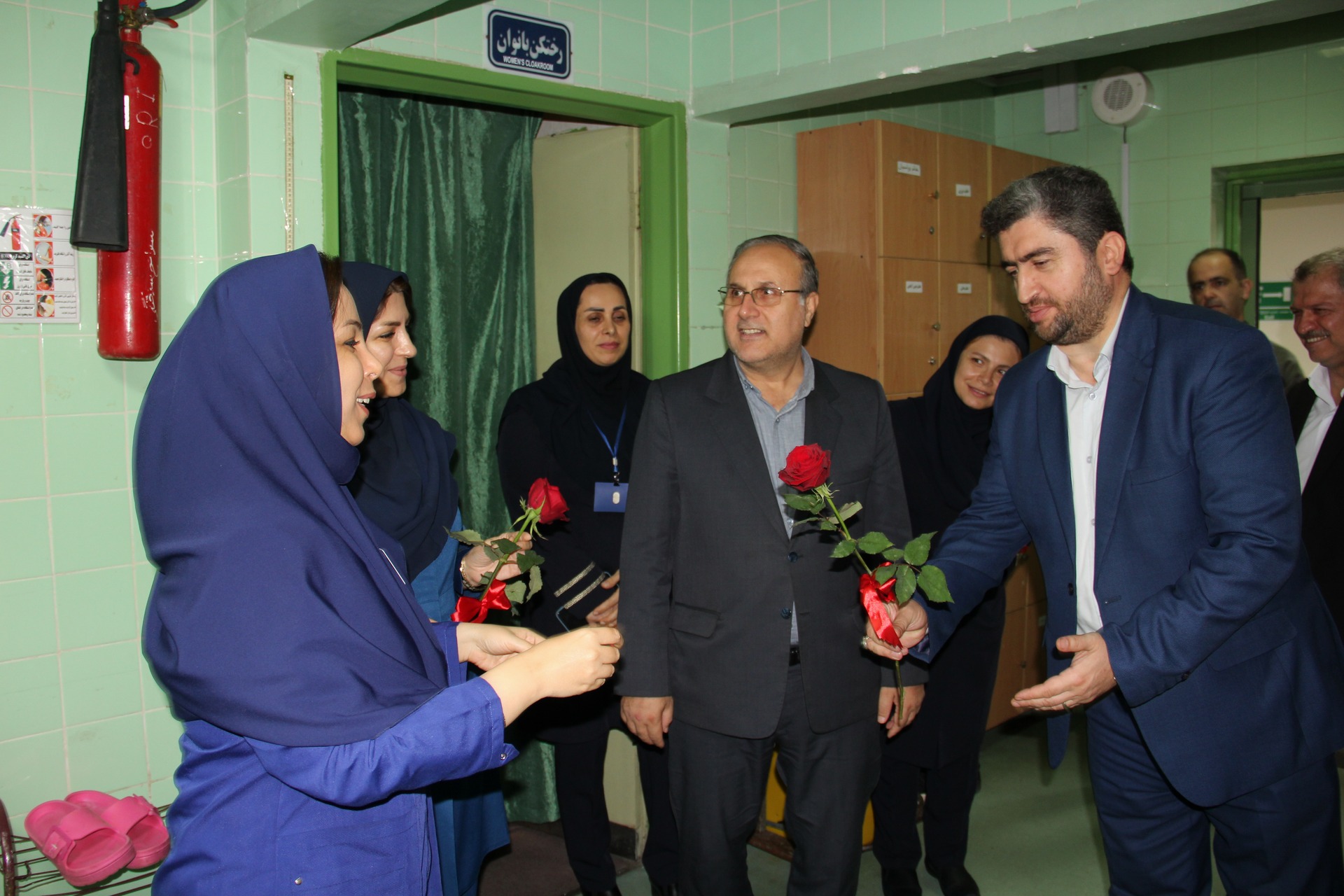 به گزارش روابط عمومی مرکز آموزشی و درمانی ولایت : حضور شهردار و عضو شورای شهر رشت در مرکز آموزشی و درمانی ولایت.همزمان با خجسته میلاد با سعادت حضرت زینب کبری (س) و روز پرستار یوسف یزدانی شهردار منطقه یک رشت،فضل طلب بازرس شهرداری منطقه یک و حسن کریمی کرنق از اعضای شورا و عضو کمیسیون بهداشتی شورای شهر رشت و تعدادی از مسئولین شهرداری با حضور در بخش های درمانی مرکز ولایت ، ولادت حضرت زینب (س) و روز پرستار را به همکاران پرتلاش پرستاری تبریک گفته و با اهدائ شاخه گل از زحمات آنان قدردانی نمودند.